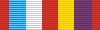 Ribbon: Equal stripes of pale blue, white, red, yellow, and purple with red edges.